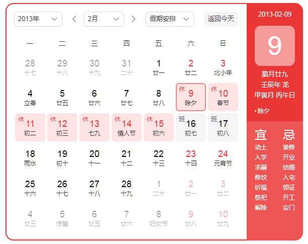 2013年春節放假通知