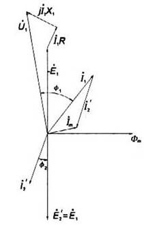 ím.激磁電流;í1、ù1.定子電流、電壓;í2.轉子側折算到定子側電流;φ1.功率因數角
