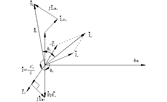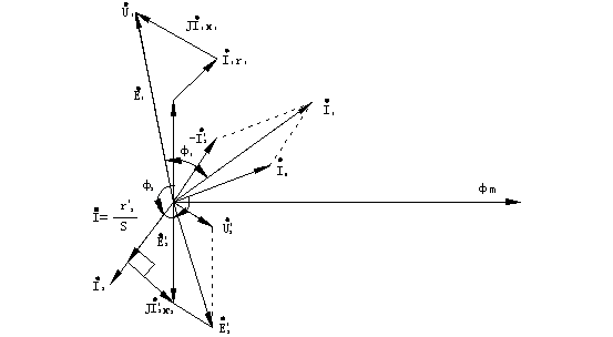 異步電機帶負載運行時的等效電路圖及各物理參數的相量關系圖如圖(1)、(2a)所示: