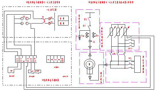 如圖三所示,進相器內配有轉子回路轉換機構,為了保護電機避免電機轉子開路,進相器KM1接觸器的常開觸點串入電機一次開關柜合閘回路中與電機一次開關柜相互聯鎖,進相器不合閘時KM1不吸合,主機不能起動;如果進相器出了故障,則CPU能自動發出退相指令使進相器退相,當轉換機構出現故障,則進相器內的KM1、KM2就會出現吸合或同時斷開的現象,此時通過KM1、KM2常閉觸點串聯后并入電機一次開關柜的分閘回路中,通過聯鎖使一次柜分閘。