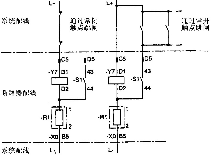 提供的電路圖通過專用的模塊和補充說明給出了斷路器的配線和連接。