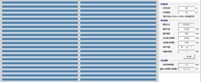 (2) 組件固定傾角安裝。根據當地的緯度,選擇方位角0度,傾角25度進行固定傾角安裝布置,光伏組件橫向安裝。