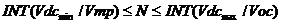 電池組件串聯數量計算如公式(1)所示,對應參數詳見本工程所選250Wp組件和逆變器規格參數表。